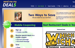 Might be a useful site if there were more actual deals, rather than deals like “Arby’s 5 for $5.95” and “Food Pyramid – free cookie for your kid while you shop”.